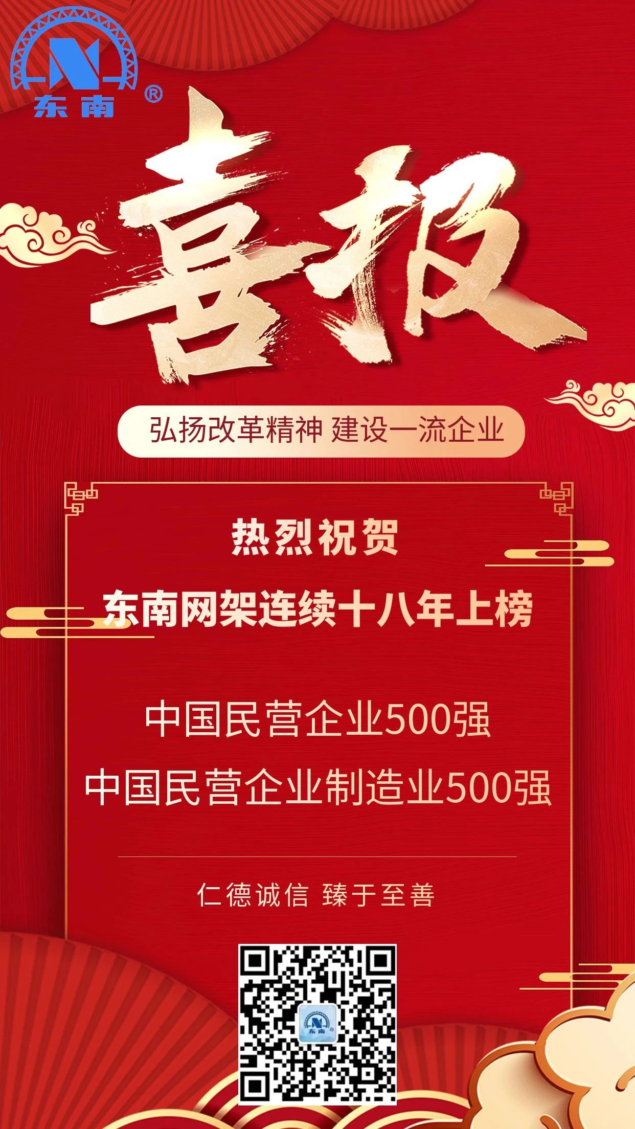 喜報 | 東南網(wǎng)架連續(xù)十八年上榜中國民營企業(yè)500強!