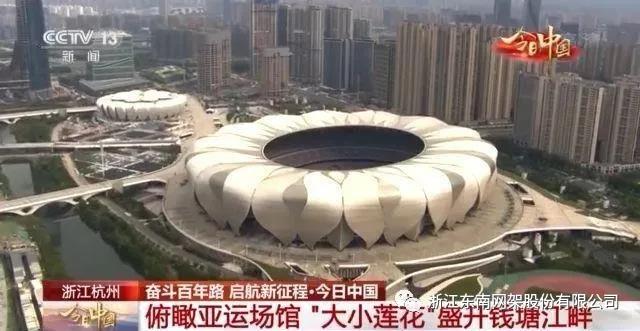 由東南網(wǎng)架承建的杭州奧體中心的主體育場(chǎng)是2022年杭州亞運(yùn)會(huì)的主會(huì)場(chǎng),亞運(yùn)會(huì)的開(kāi)閉幕式都將在這里舉辦。主體育場(chǎng)建筑面積22.9萬(wàn)平方米,總座席達(dá)10萬(wàn)座,為國(guó)內(nèi)外特大型體育場(chǎng)之一。體育場(chǎng)罩棚采用由28片主、次花瓣造型的空間管桁架結(jié)構(gòu)+弦支單層網(wǎng)殼結(jié)構(gòu),為國(guó)內(nèi)首創(chuàng)鋼管空間彎弧桁架,并且用鋼量比同等規(guī)模體育場(chǎng)節(jié)省50%。就像是一朵盛開(kāi)在錢(qián)塘江畔的蓮花,杭州市民親切稱(chēng)它為“大蓮花”。隨著亞運(yùn)會(huì)進(jìn)入倒計(jì)時(shí),有很多慶?;顒?dòng)都在“大蓮花”里舉辦。